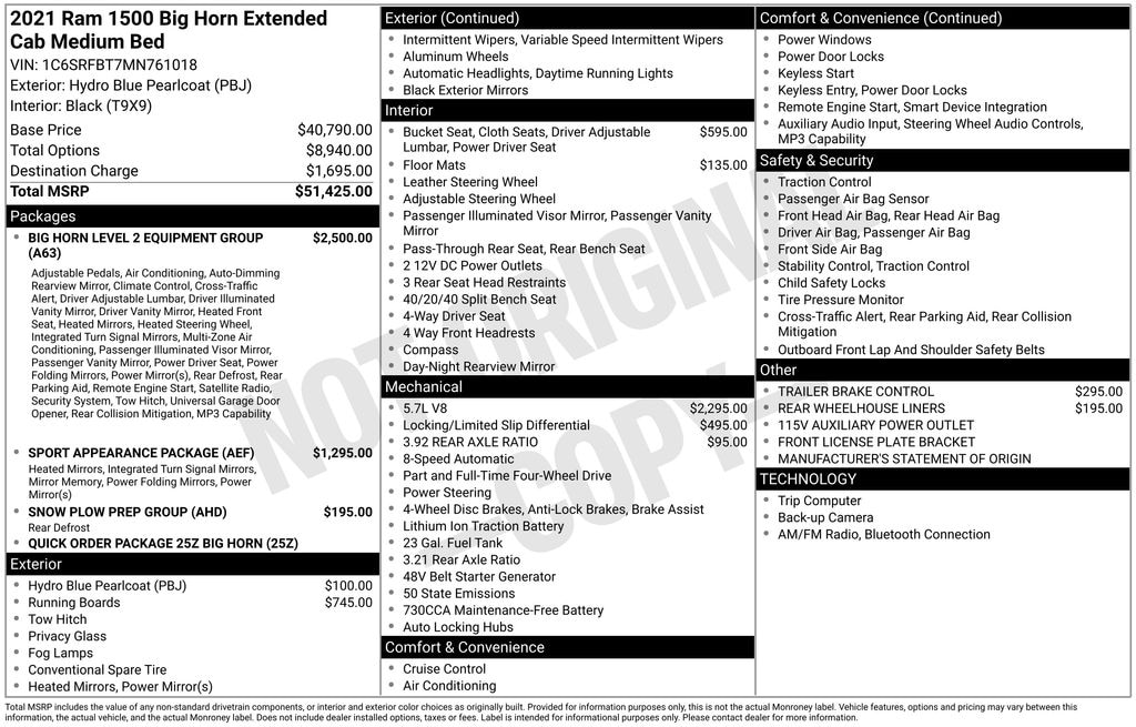 PLEASE READ CAREFULLY. We use various computer software sources to decode the vehicle identification number of our displayed vehicles. This software helps us list the equipment of the vehicles we have online for sale. Although usually pretty accurate, there are sometimes errors. So please look over the equipment very carefully when you inspect our vehicles. We care very much about our customers and donât want to have any misunderstandings! Also our vehicles are priced using equally sophisticated software and rely on many factors to help us place our vehicles with our best price first. Specific equipment can be a factor, but not the only factor of pricing.*NOT ALL VEHICLES AVAILABLE FOR IMMEDIATE DELIVERY.